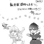 【鷹神様と憐れな生贄 宵月】 新キャラの双子ちゃんと凍凪さま 凍凪さまはカラーで描く機会が無かったので、モノクロで描いた初期のキャラデザです(いつかカラーで描く機会があればいいな) #鷹神様と憐れな生贄