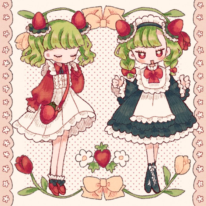 56 242 【創作】おめかし双子ちゃん #くだものっこ 23/02/26 20:37