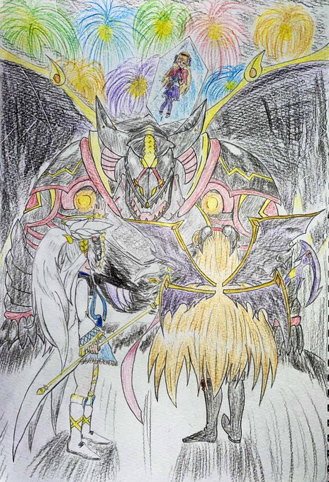 周年記念イラスト第二弾完成!! レイドイベントのワンシーンを妄想で描きました。決戦の後ろで思い出の花火上がってるの良い…良くない? #神姫プロジェクト #神プロ6周年おめでとう #神プロ6周年おめでとう
