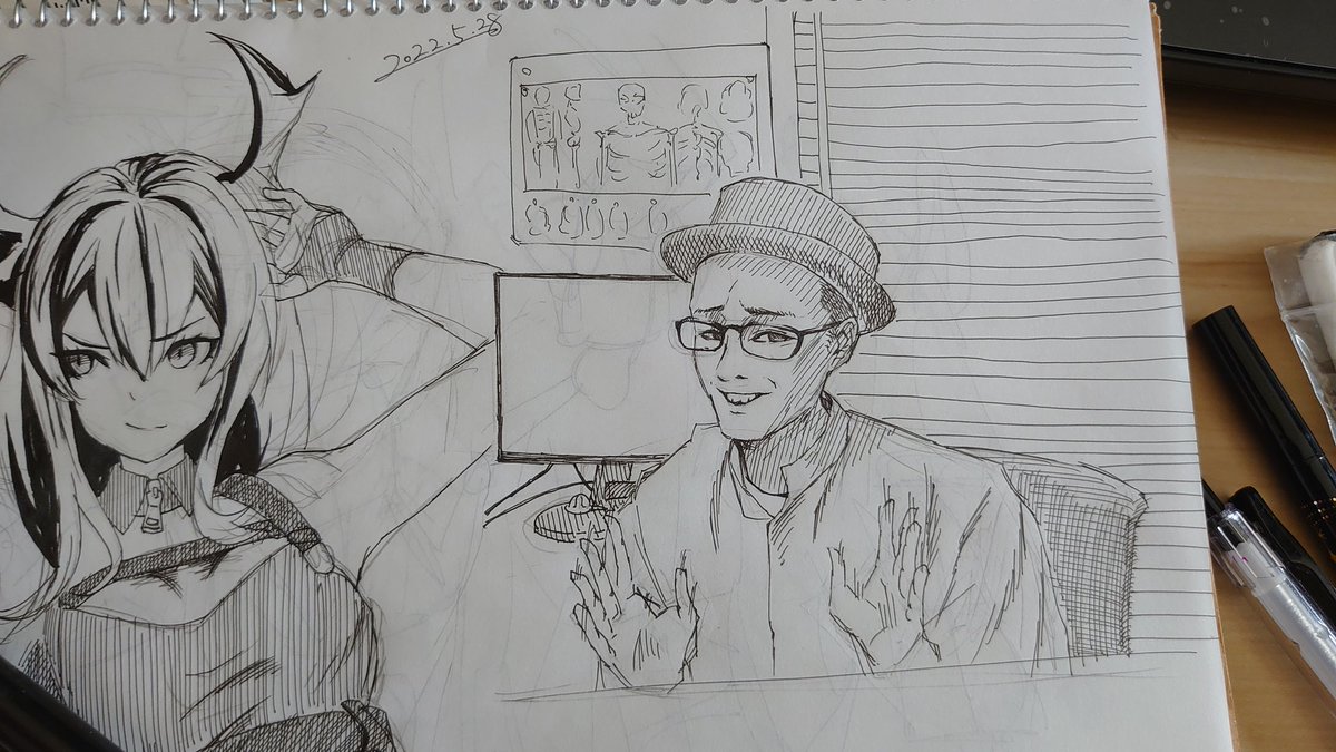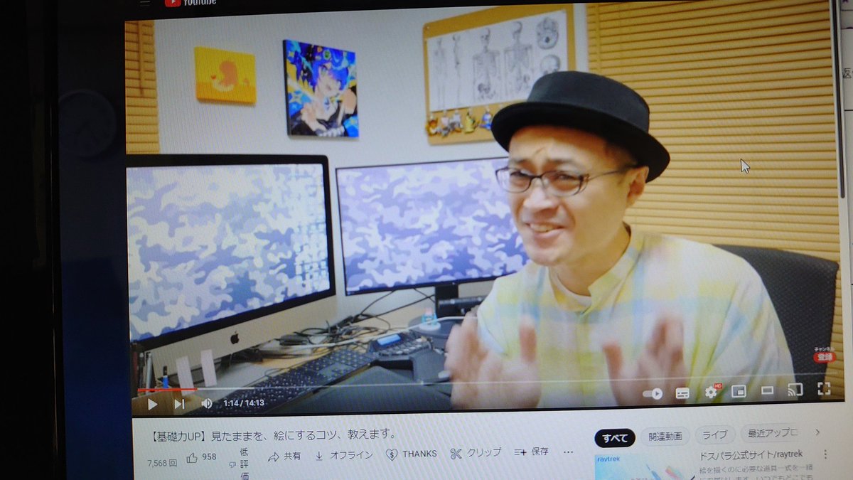 1 9 昨日のさいとう先生の動画で『見たまま描き移せるようにする』を聞いて、やらねばの思いその場でシークバーを止めてその瞬間のさいとう先生を描きました。 22/05/29 09:05
