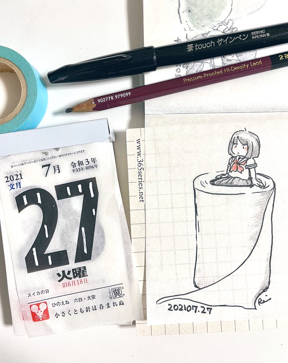 20210727 教室にあったトイレットペーパーを 倒しちゃってコロコロさせたけど ちゃんと巻いて戻しておいた(はず) #日めくりカレンダー #365notebook #一日一絵 #イラスト #お絵描き