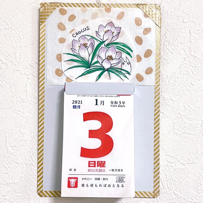 1月3日 誕生花のクロッカス 今週は仕事始め。 学校も始まります。 一日一絵、 こんなかんじで ゆるくゆるく 今年は続くといいなー #365notebook #日めくりカレンダー #誕生花 #一日一絵