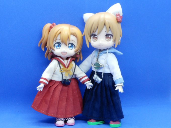 #深夜のねんどろ撮影60分一本勝負 3/31【こんげつのしゃしん】(遅刻) 3月は新しい制服を着たり、満漢全席のエビチリを堪能したりした。 4月はこの子たちとお出かけしようかな? #ねんどろいどどーる