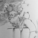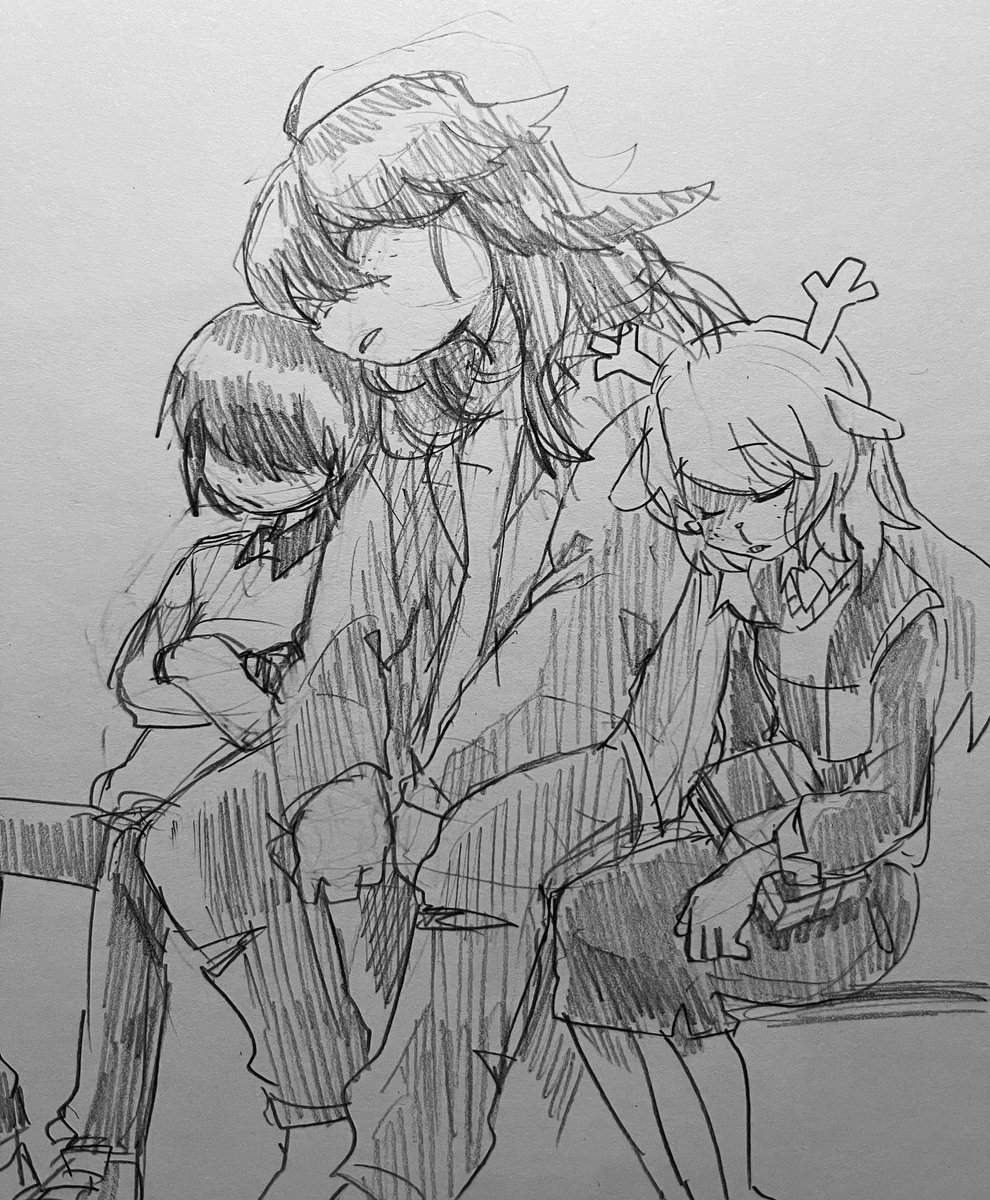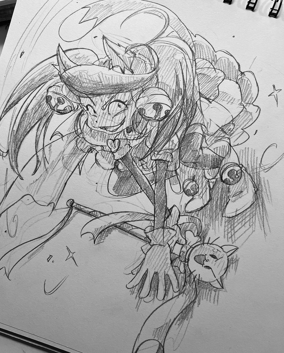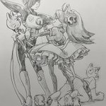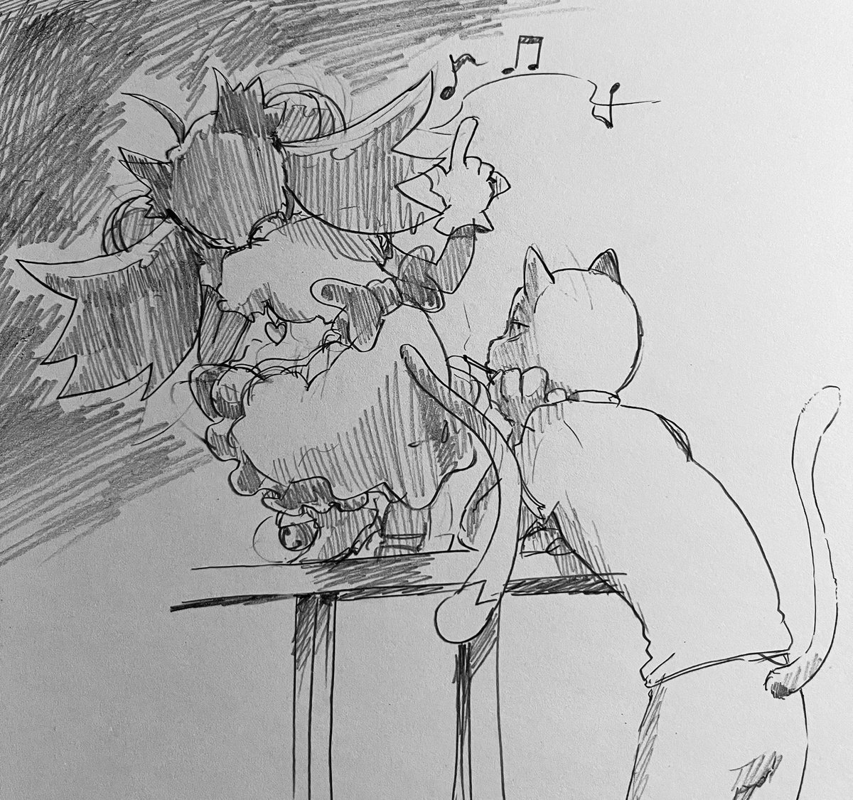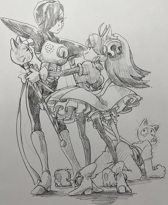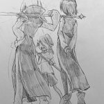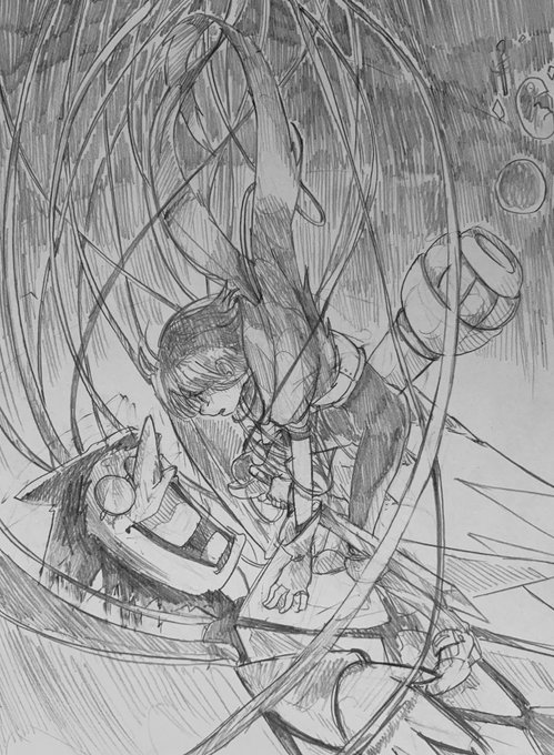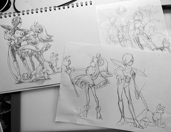 最近は出来るだけ丁寧に描くを意識してるので大ラフ(別紙で構図やキャラサイズ決め)→ラフほぼ下書き(更に別紙、表情パーツなど細部の書き出しなど)→本書き(スケブにトレース)の工程をちゃんとしてます(偉い!) この間の工程抜いて描くと、途端に雑な落書きになり申す