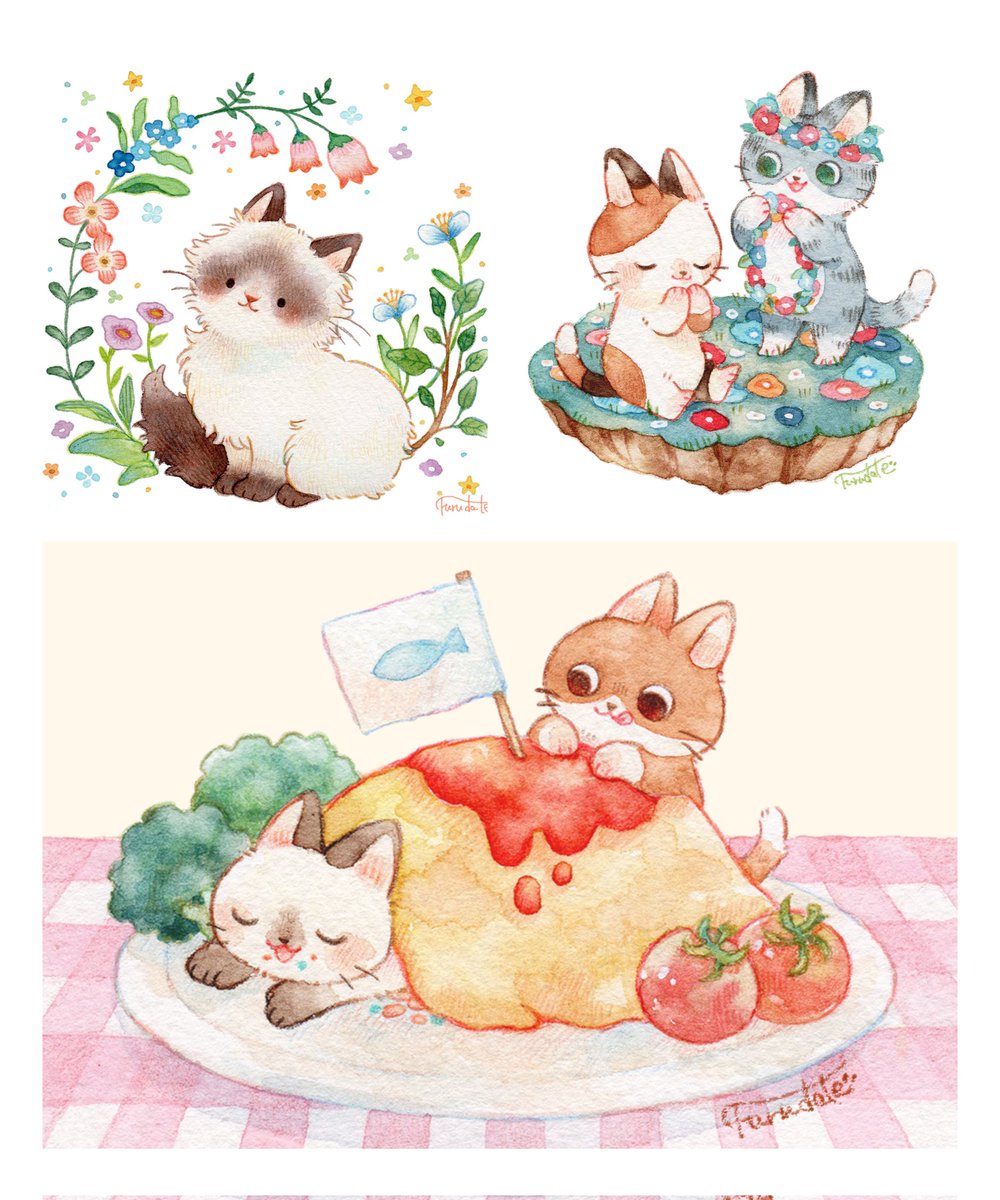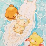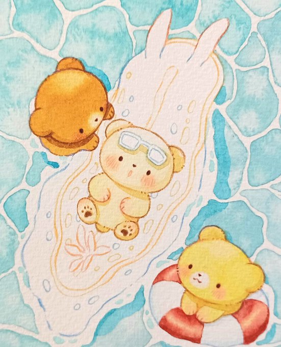 去年描いたこぐま3匹の夏満喫ver. 新作4枚描いてます✨合間にオーダーイラストも進めよう🖌️