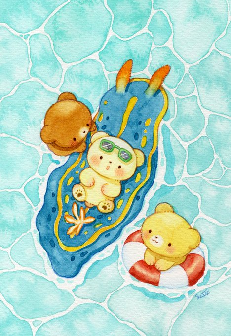 10 41 去年描いたこぐま3匹の夏満喫ver. 新作4枚描いてます✨合間にオーダーイラストも進めよう🖌️ 23/08/05 16:16