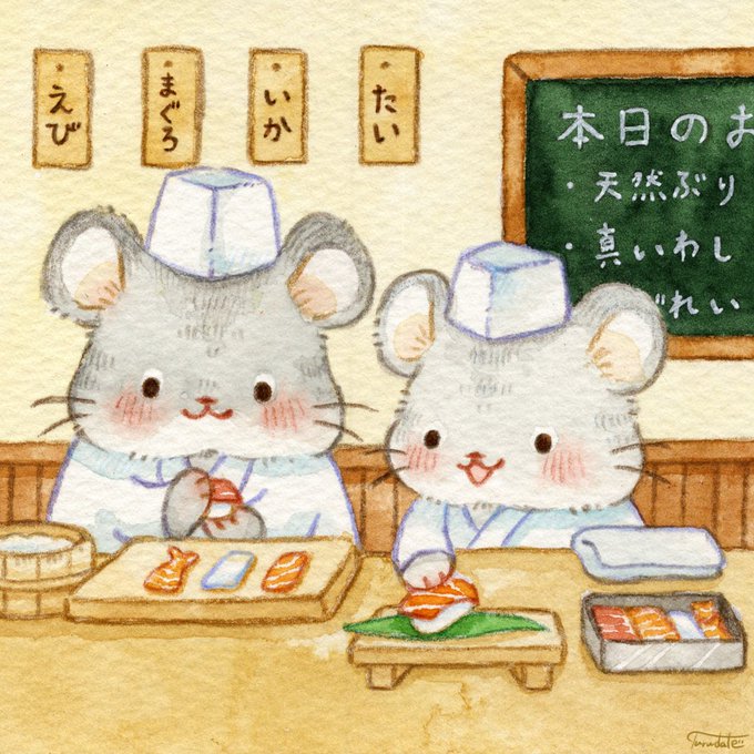 93 590 オーダーで描かせて頂いた板前さんなチンチラ達🍣 23/03/05 20:14