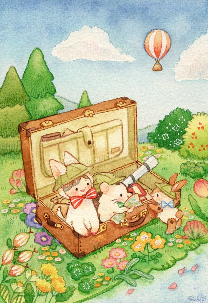 「冒険へ行こう!」 2019年に描いていたきぐるみ君、ハリネズミ君、うさぎさんのラフをやっと完成させました🍀