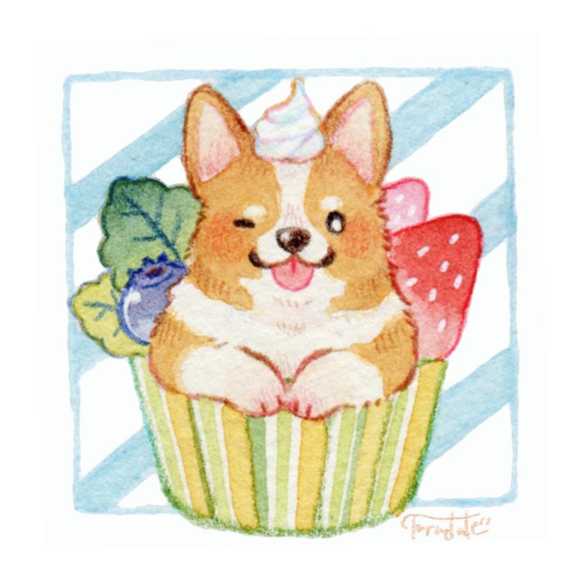 カップケーキなコーギーとポメラニアン🍓🍎minneに追加しました!