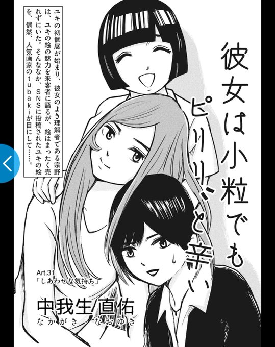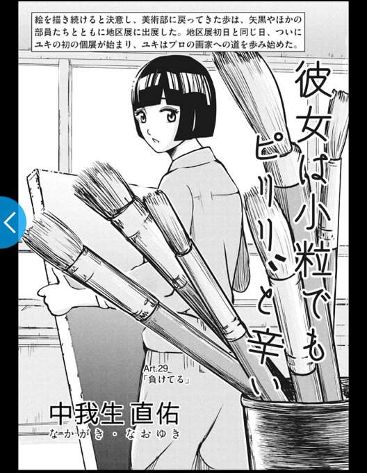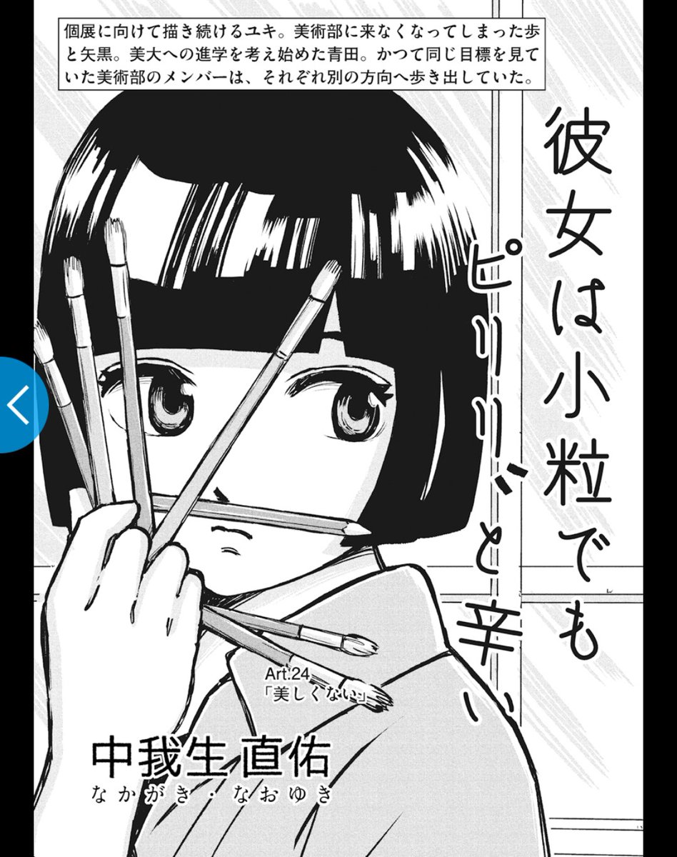 【拡散希望】WEBきらら7月号更新!『彼女は小粒でもピリリと辛い』( #かのピリ) の最新話がアップされました! Art.33「自分そのもの」 ユキの個展が終わりに近づく。その日やって来たのは…? shosetsumaru.tameshiyo.me/Q202307KANOPIR… 美術に生きる若者たちの物語を是非ご覧ください🎨🖌️ #漫画が読めるハッシュタグ