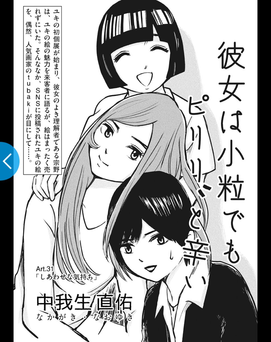 【拡散希望】WEBきらら5月号更新!『彼女は小粒でもピリリと辛い』( #かのピリ) の最新話がアップされました! Art.31「しあわせな気持ち」 初めての個展。ユキの絵はまったく売れずにいたが…。 shosetsumaru.tameshiyo.me/Q202305KANOPIR… 美術に生きる若者たちの物語を是非ご覧ください🖌️ #漫画が読めるハッシュタグ