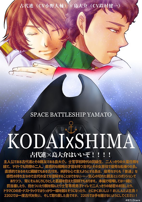 #4月になったのでフォロワーさんに自己紹介しようぜ 古代×島とか山崎×島とかテレサ×島とか猫の手組(古代、島、キーマン)が好きでいろいろ描いてます。デスラー家も好き。2199から入ったヤマトは旧作も履修済み。石津版大好き。復活篇も大好きです。