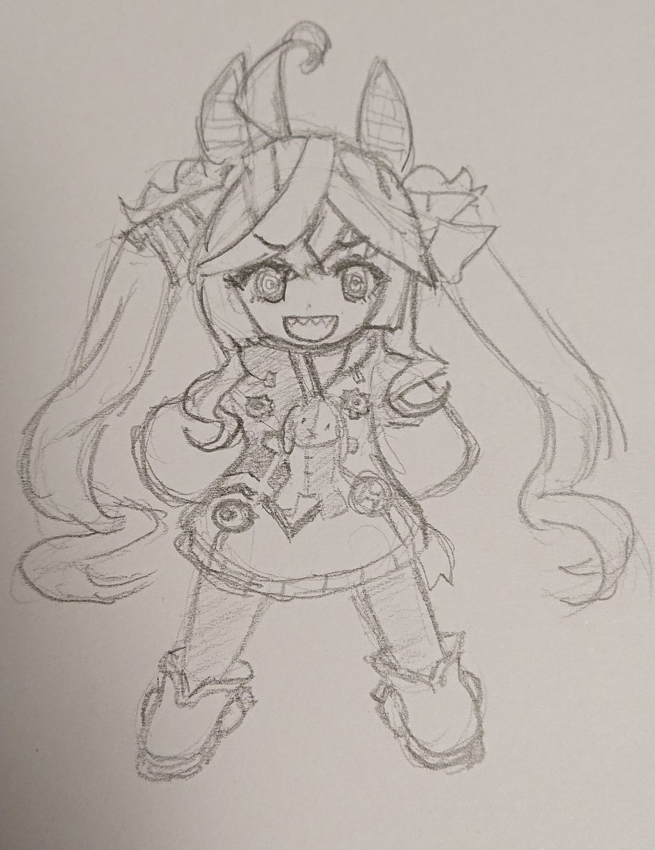 ねんどろいどの画像見ながら描いたよ 髪の構造難しいな