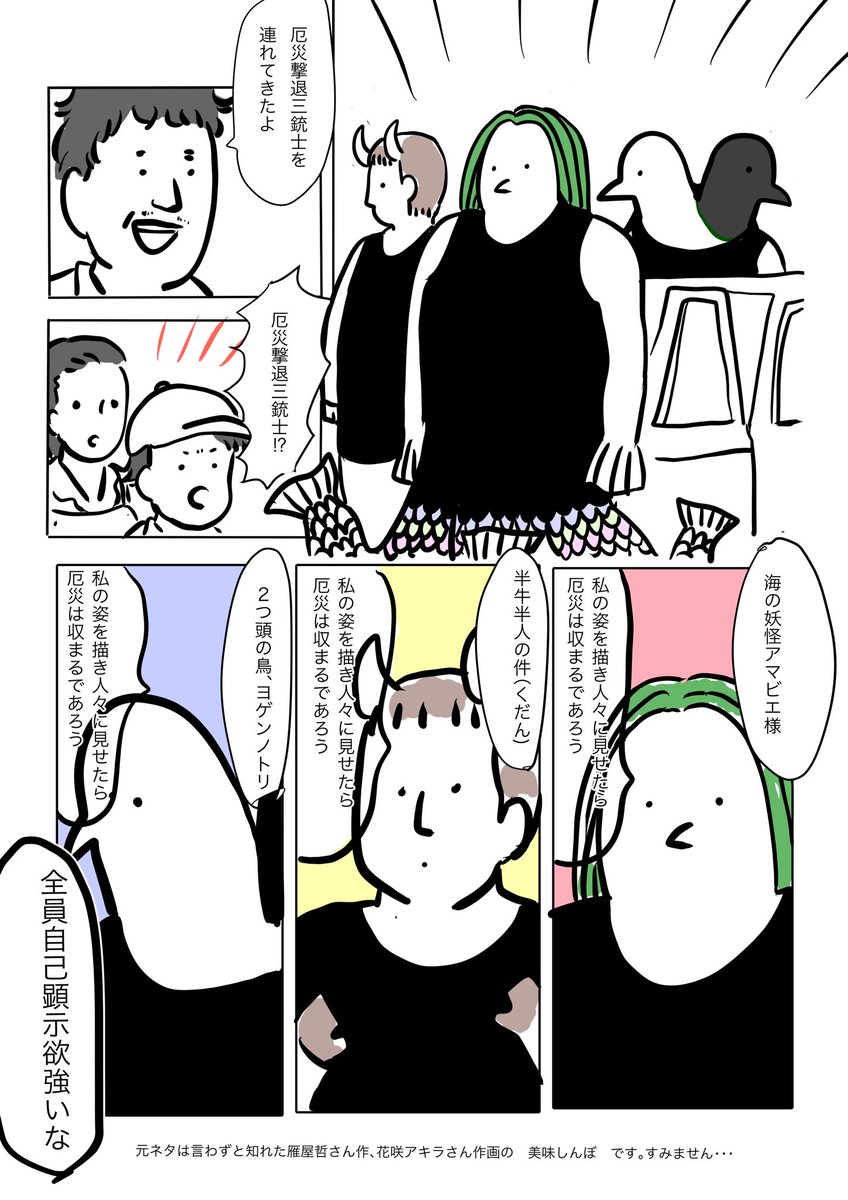 厄除け妖怪、TikTokとかやってそう #アマビエ #ヨゲンノトリ #件