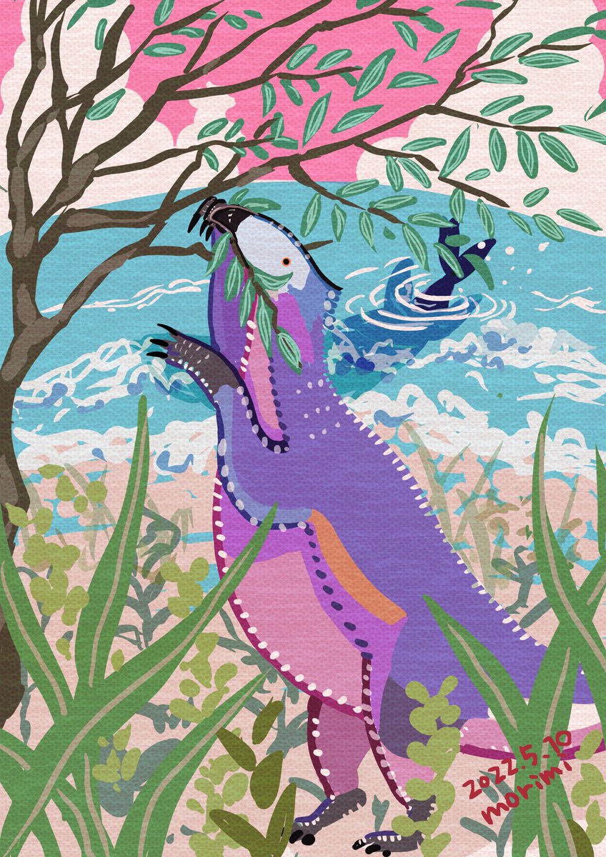 1 5 北海道で見つかって新種と認定された パラリテリジノサウルス・ジャポニクスを描いてみました。 水辺に生息、鉤爪で葉っぱを引き寄せて食べていたかもとか。 22/05/15 21:04