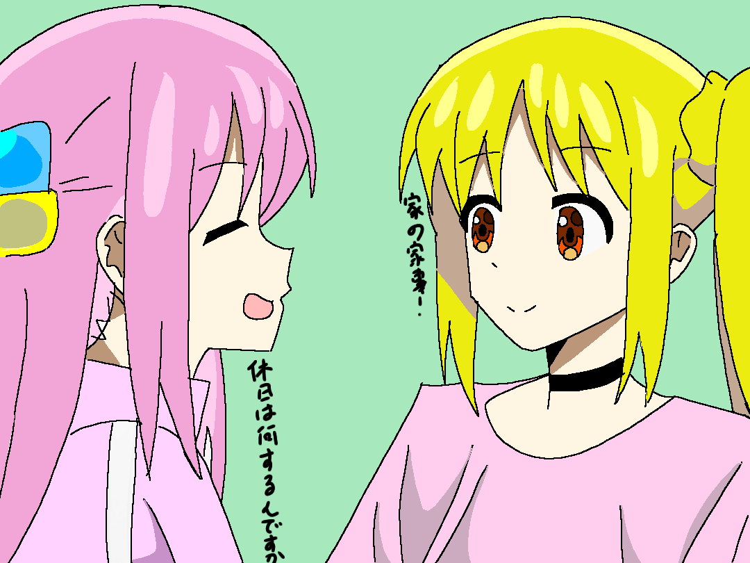 今、絵休止中だから、過去絵を。 #ぼっち・ざ・ろっく #後藤ひとり #伊地知虹夏 #絵描きさんと繋がりたい