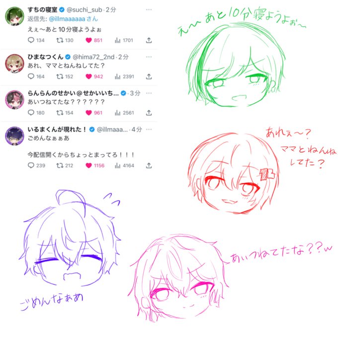 この絡みやっば!推し可愛い♡ グハ_:( _* ́ཫ`):_ ↑ってなった人リプ((調子乗んな(殴 #シクスフォト #いるまにあふぁみりー #らんらんかんしちゅう #72あーと #すちくんおきて