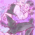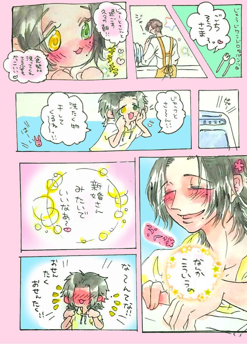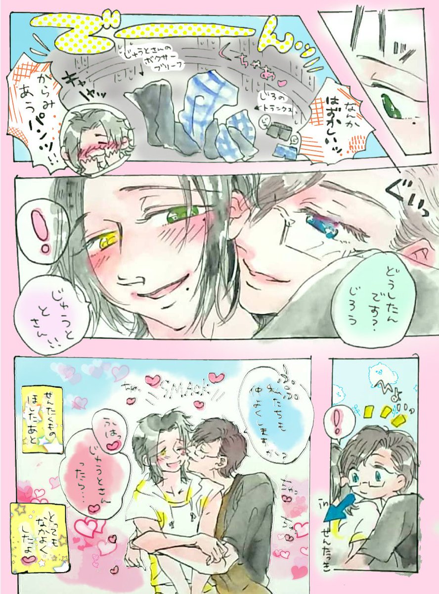 お題『パンツ』 大大遅刻ですみません💦 お泊りの朝とか、お休みが合った日の朝の何気ない日常の中で、いちゃいちゃキャッキャする銃二ちゃんです🐇🐕 ずっとずっと仲良しでいてくれ~✨ #銃二版深夜の真剣お絵描き60分一本勝負