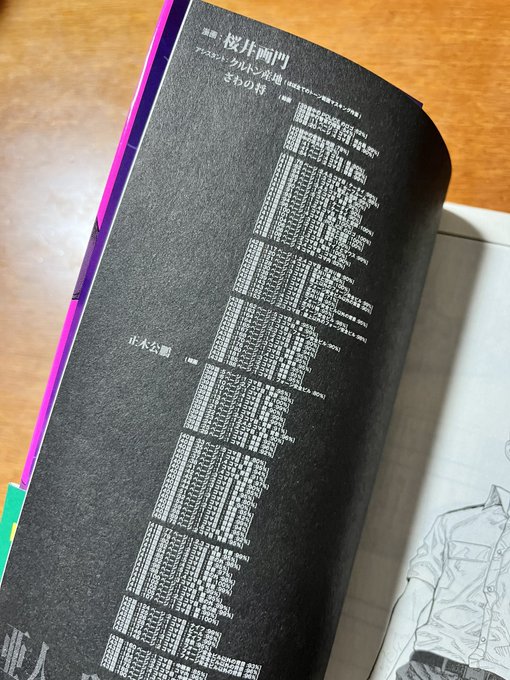「亜人」のアシスタント紹介ページを見てびっくりした。漫画は先生の作品だけど、自分で描いたコマの背景はその人の作品だもんね。 これはアシスタントさん凄く嬉しいだろうなぁ、やりがいも倍増すると思う!