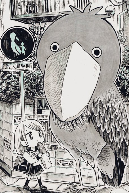 大きな鳥がいた。ハシビロコウでした。 #イラスト