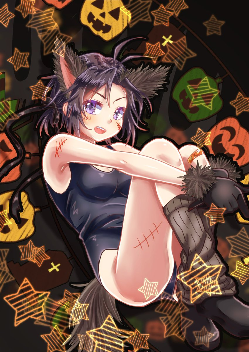 56 113 #十月二八日は真日 #ハロウィン 真日だぁ🥰 スク水オオカミちゃんだぁ😍 21/10/28 00:04