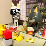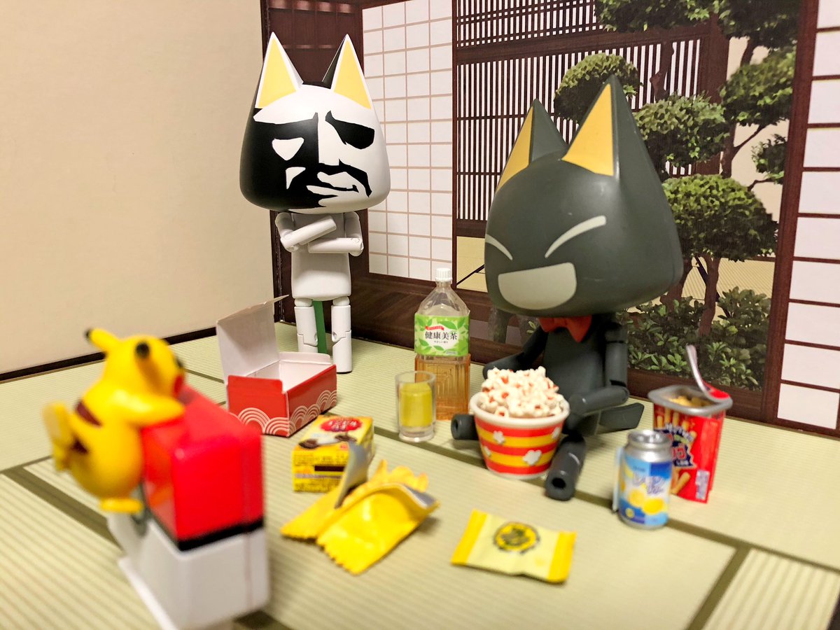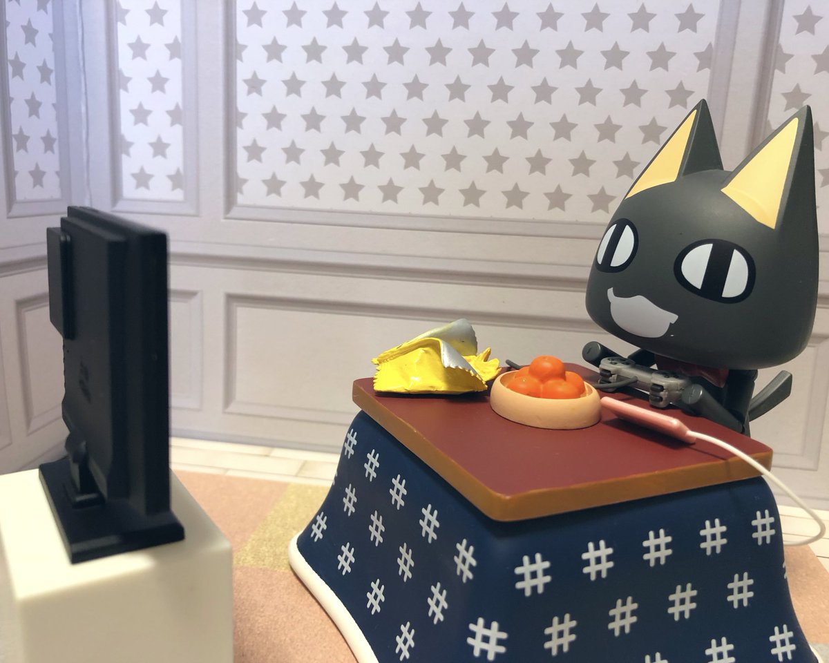 コタツでゲームしながらスマホで動画見つつお菓子を食べる最近の休日を駄猫で再現しましたФωФ) #どこでもいっしょ