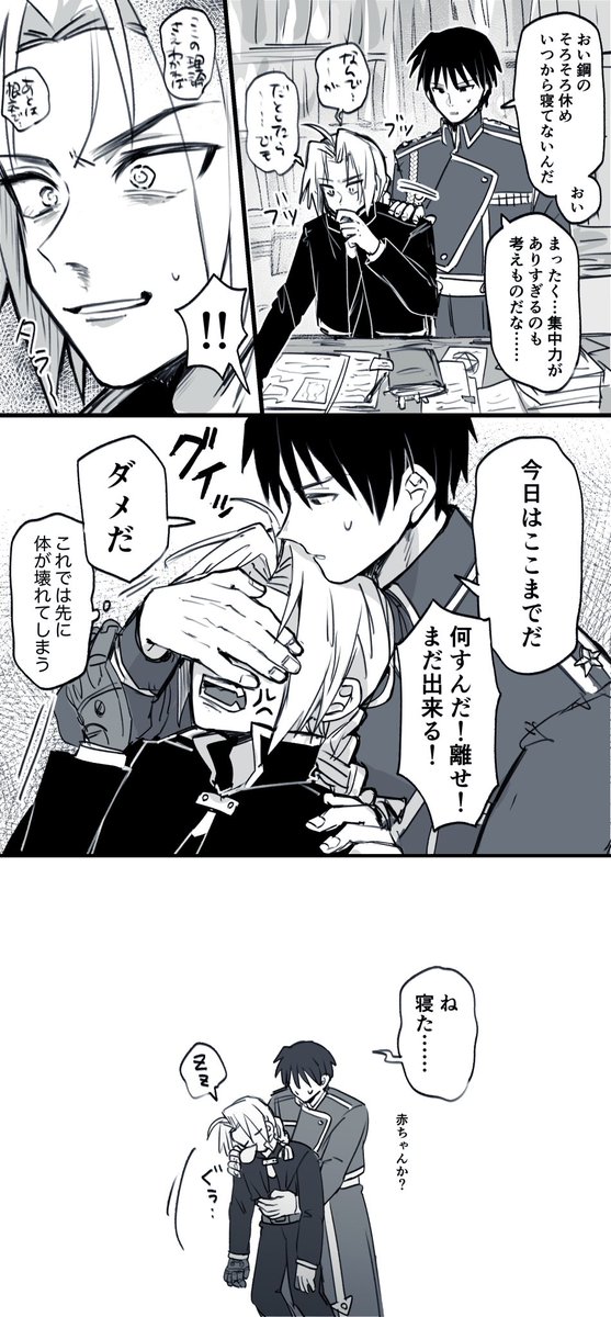 960 10.6K エドが無茶する姿をたびたび目の当たりにしてきた司令部のみんながやや過保護気味になってたらという話 23/05/24 20:35