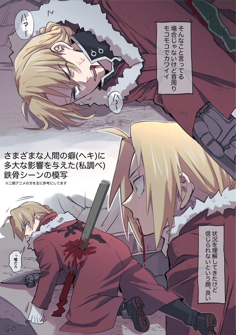 初心に帰って鉄骨刺さるエドワードくん模写してた ※流血注意