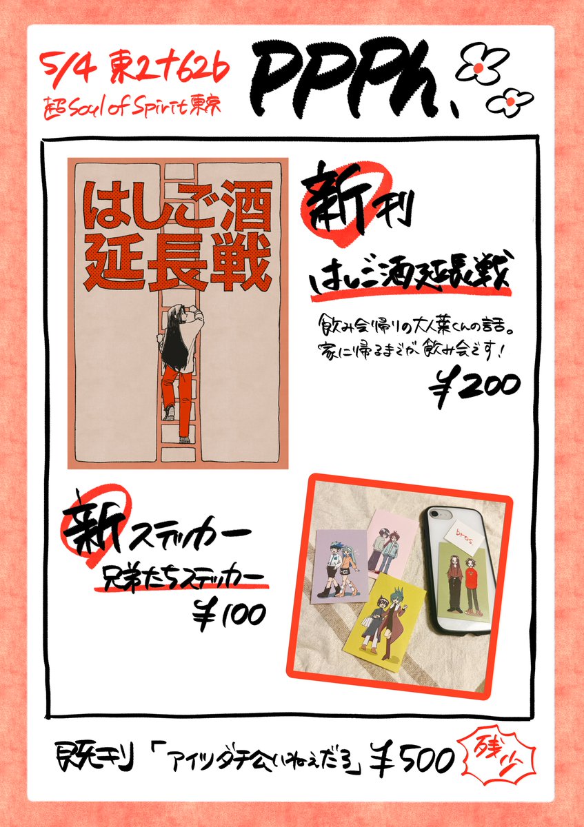 2023/5/4 超Soul of Sprit東京 東京ビッグサイト 東2ナ62b【ppph.】 お品書きです🙌 既刊も若干数ですが持っていきます。 乾杯しましょう🍻
