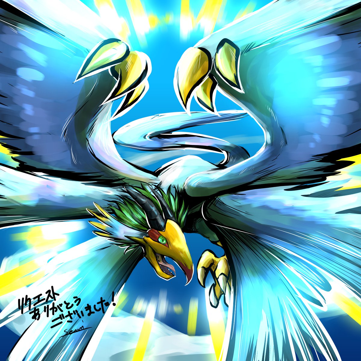 お待たせ致しました!リクエストで「オメガモンマーシフルモード」です。ちょっといつも描いているのとは違うサイズ感。リクエストありがとうございました! #fanart #フォロワー1000人記念