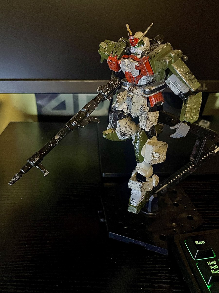 ガンダムグレイトアームズ完成しました。塗装したら胸のハッチ部分が割れたり腕を無理矢理つけてるから根元から割れたりしたけど何とか形になった。ウェザリングはさっぱり分からん #ガンプラ改造 #ガンプラの画像貼るとRTされると聞いて #ガンプラ好きな人と繋がりたい #ガンプラは自由だ