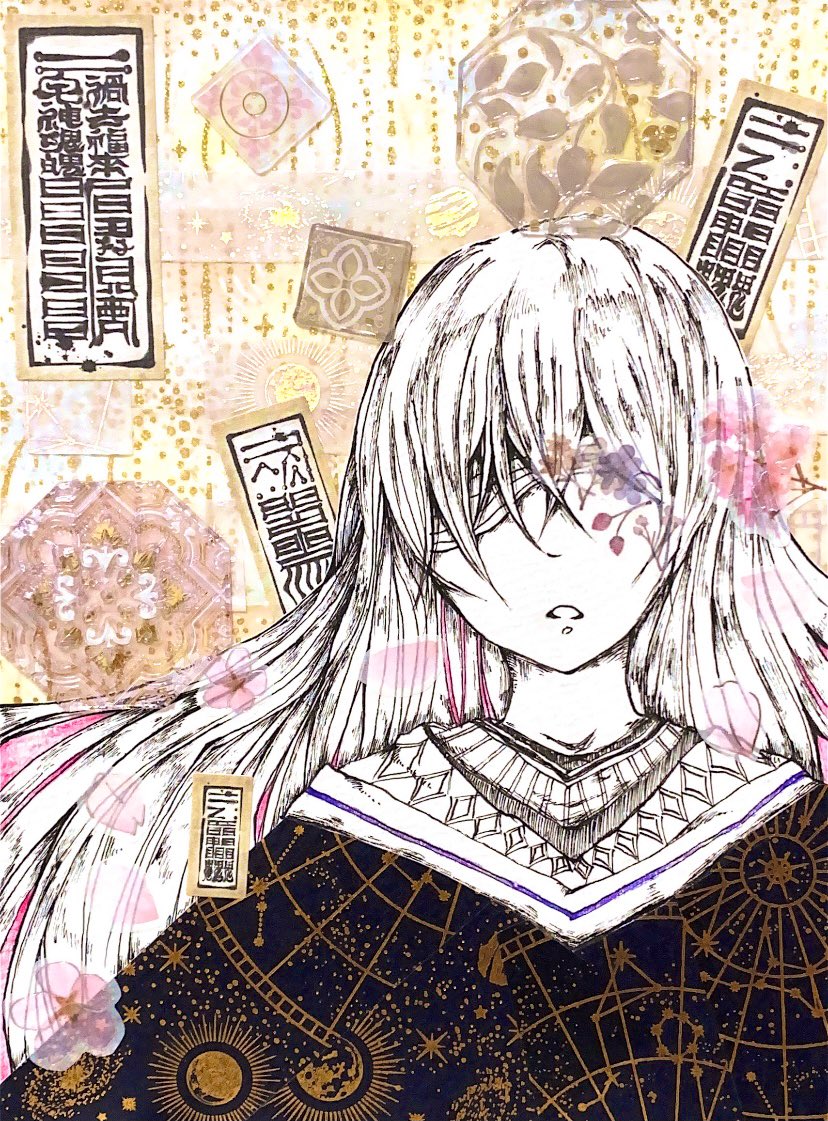 0 5 おふだで戦うタイプの女の子和風仕上げ。二日連続で絵かけた☺️ #イラスト #マスキングテープ 22/07/07 19:02