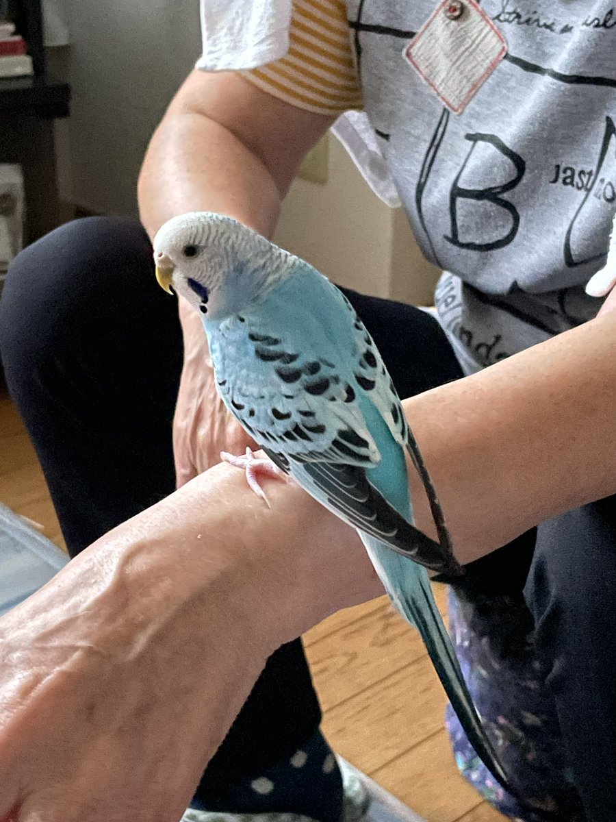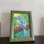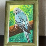 ピーコちゃん アクリル画 ハガキサイズ 実家で飼っているセキセイインコを描きました。 ペット似顔絵オーダー:5,000円 絵の依頼はこちらから↓ minne.com/items/33020280 #ペット似顔絵 #セキセイインコ