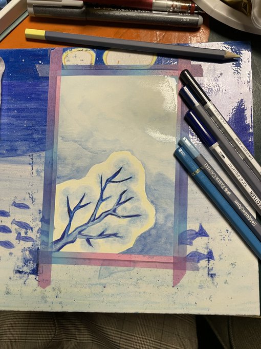 艶が出てきた! 楽しすぎて描き終わりたくない。 明日は脚と背景描いて完成までいけるかどうかー このあと2時間と決めて油絵描きます #色鉛筆画 #札幌Twitter会 #絵描きさんと繋がりたい