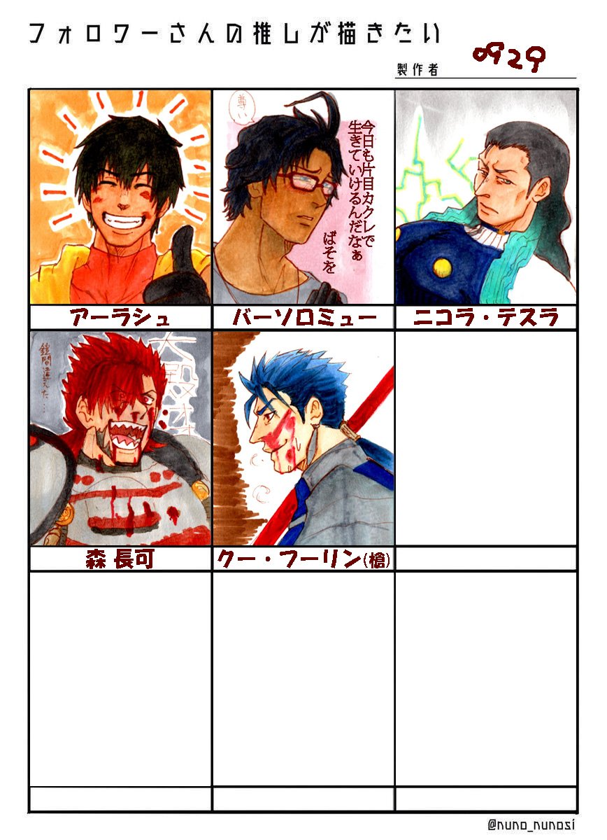 1 2 でっどりさんと相方から貰った無双組描き終わりました!有難う御座いました!! #フォロワーさんの推しが描きたい アラナンさんと個人的に描きたいピオくんはまた後日。 19/08/24 12:27