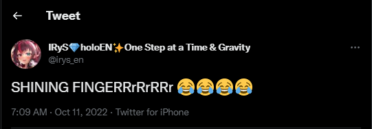 shiny smiley!...finger? can we get a burning finger - Irys version next... #IRySart