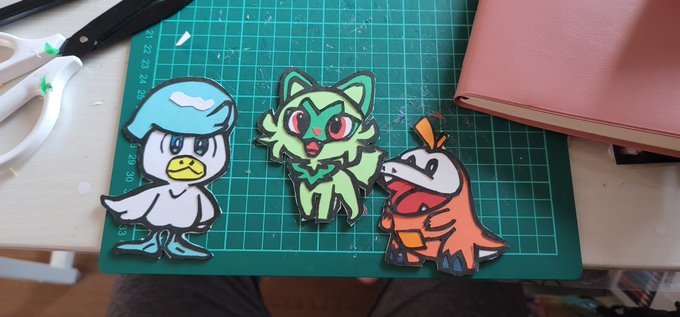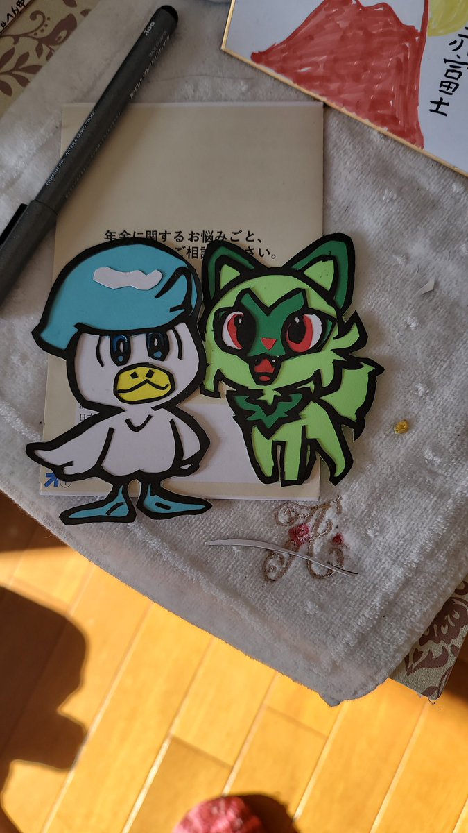 やっと完成したよw #ポケモン切り絵 #ポケモンSV #クワッス #ホゲータ #ニャオハ