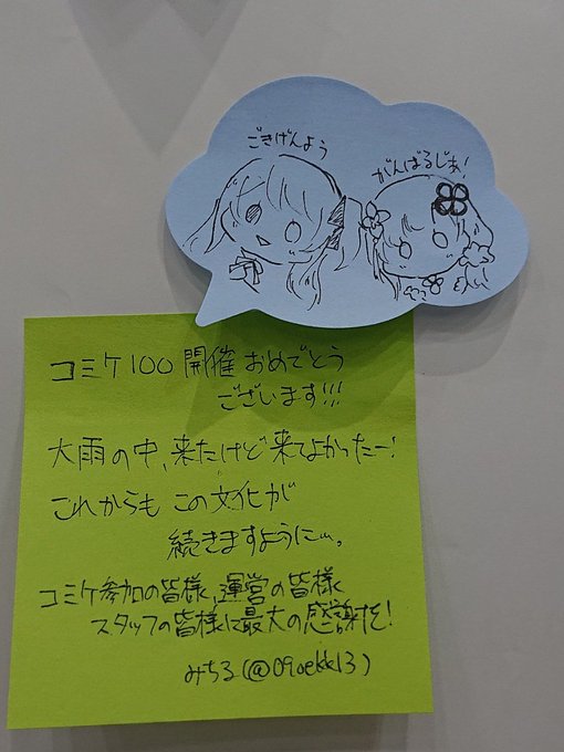 コミケの壁にメッセージ描けるエリアで描きました😃 めちゃめちゃ楽しかったです