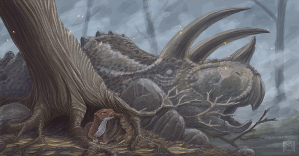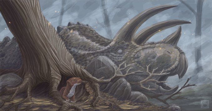 It's been a long night, time to lay down and relax with #Borealopelta markmitchelli. Make your bed if ferns and drift off. 🌛💤 #paleoart #sciart #humanartist #art #ArtistOnTwitter