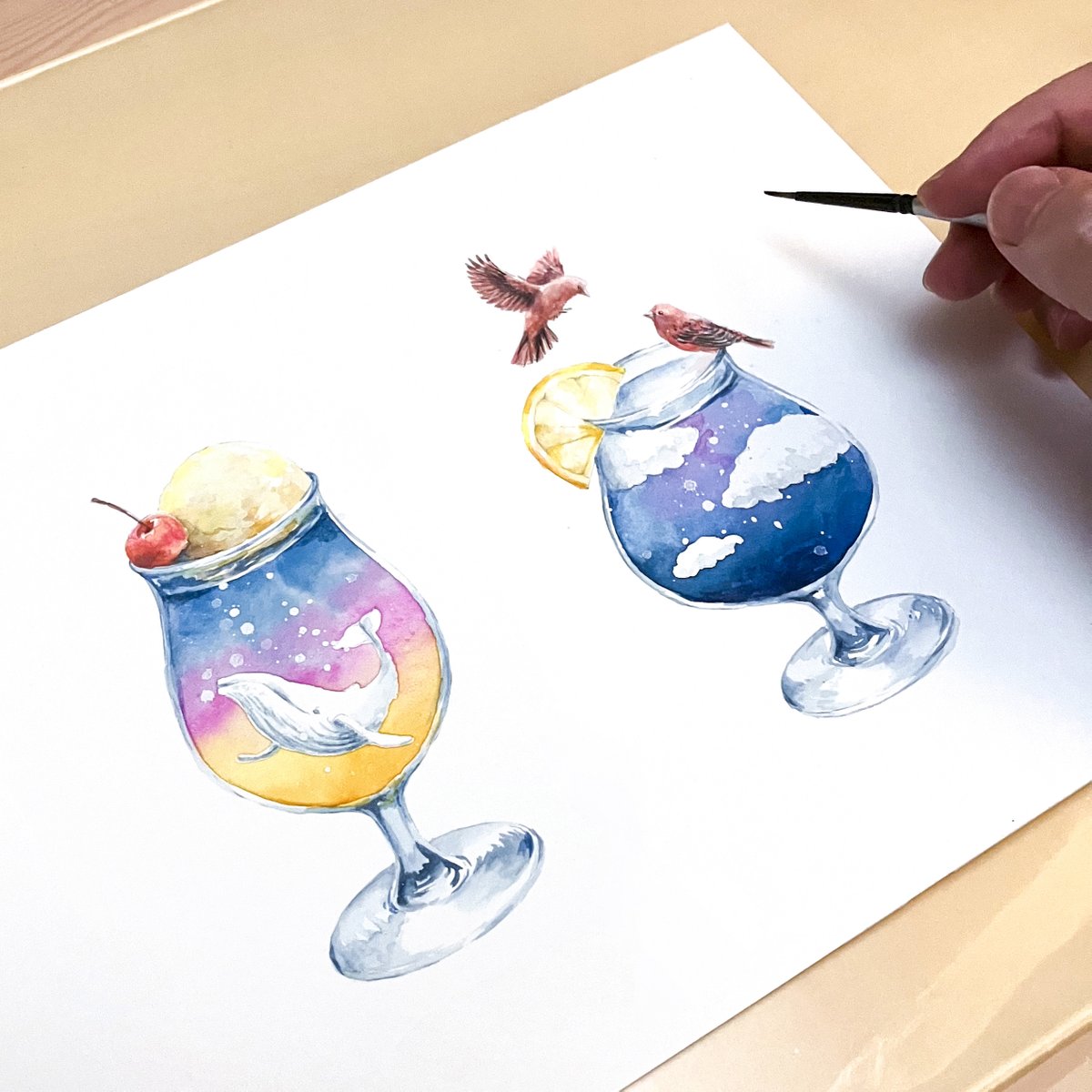 28 342 クリームなソーダと。 #水彩画 #透明水彩 #アナログイラスト #絵描きさんと繋がりたい #watercolorpainting 23/04/11 20:41