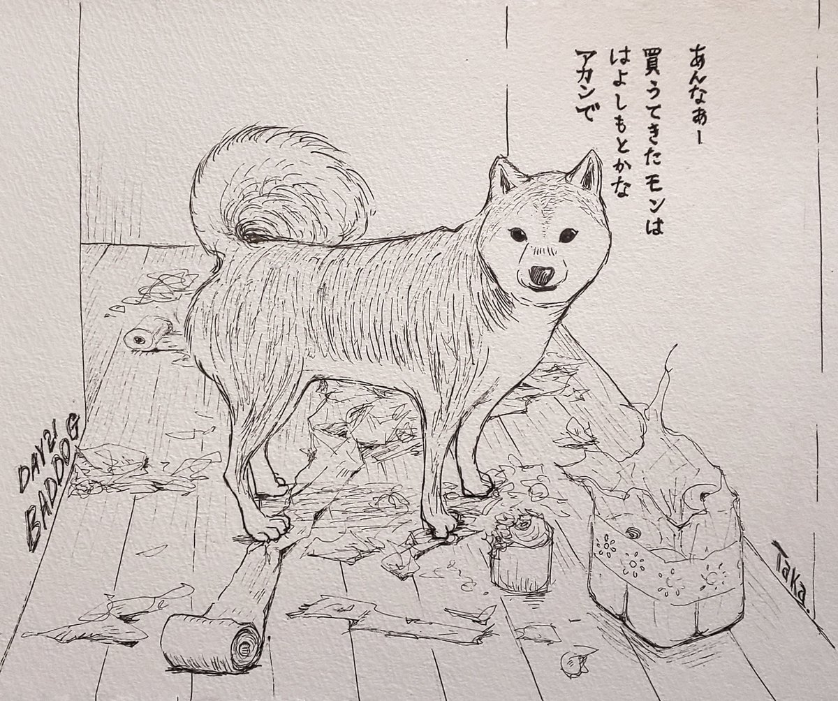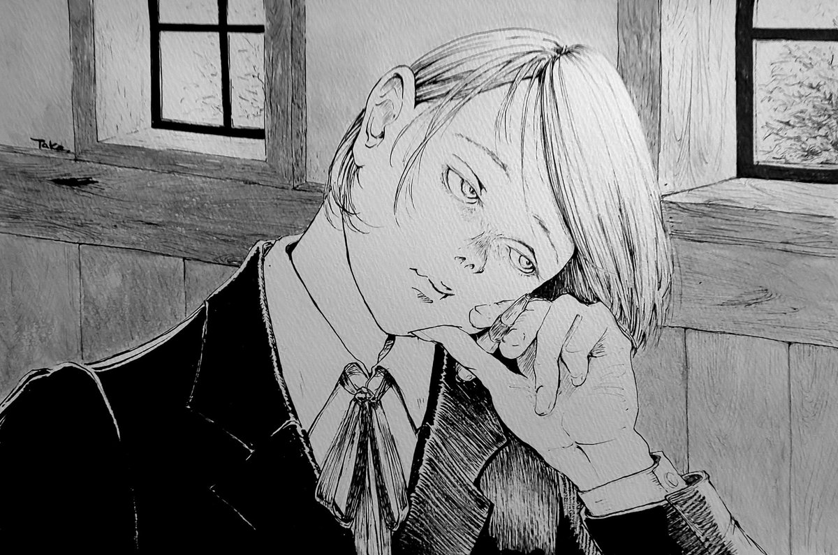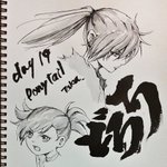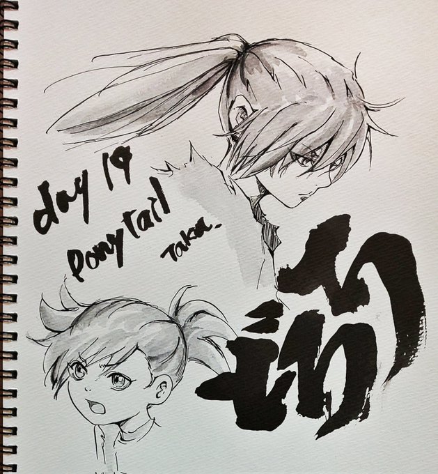 #inktober2022 #inktober day19【ponytail ポニーテール】 今日は百鬼丸とどろろ模写 (浅田弘幸さん「風花雪月」より) 描いた絵に書を添えるのホント緊張する…
