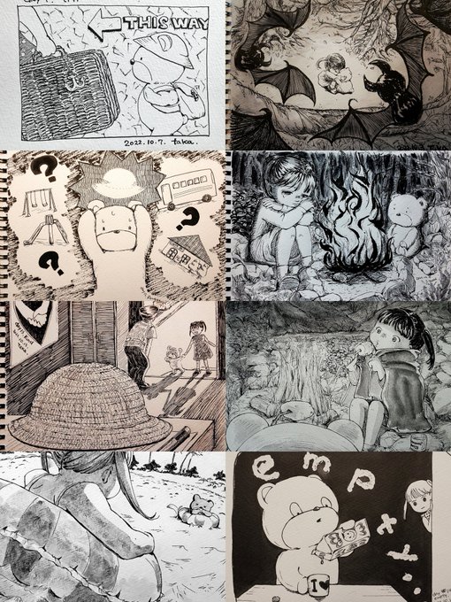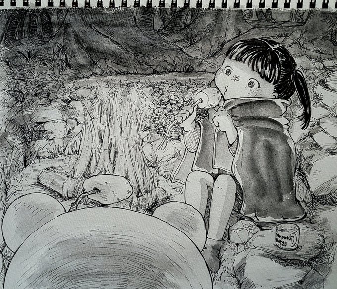 #inktober2022 #inktober day28【camping キャンプ】 絵柄もタッチも別人?ってなるけどflameのその後 twitter.com/0IF2wdCE6xHg…