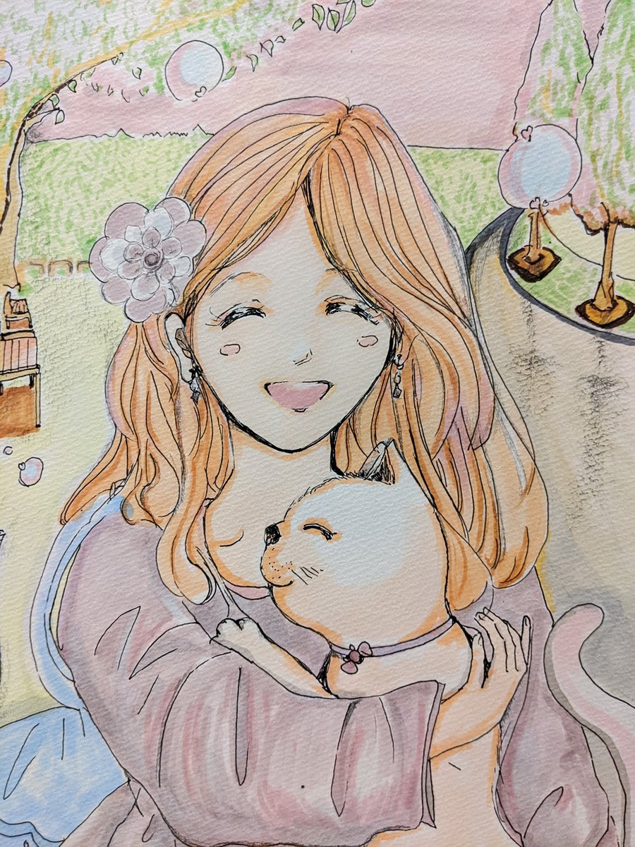 「偶然」 HANA #イラスト #アナログイラスト #花 #人物 #猫 #コピック #ふんわり #HANA