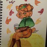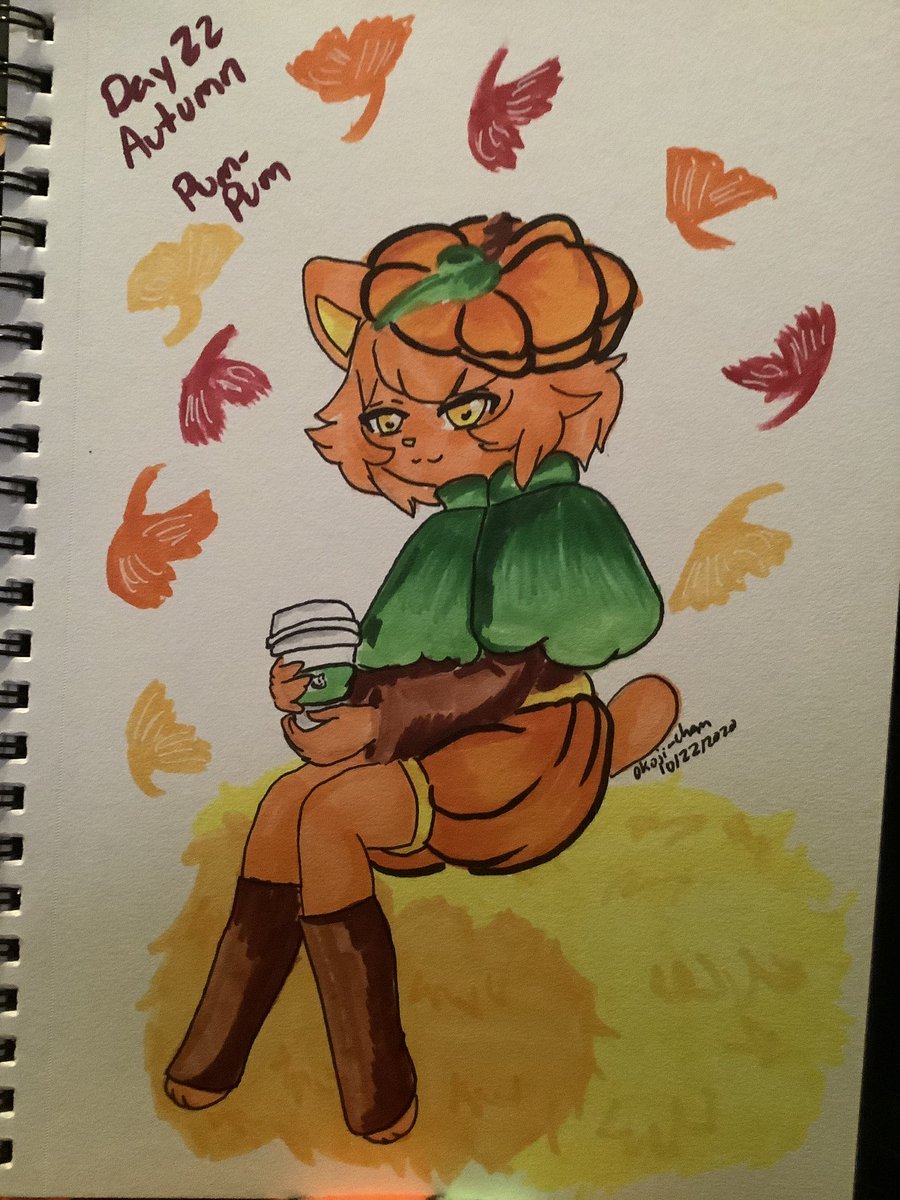 Day 22 is Autumn~~ And not gonna lie, I really wanted to draw another Meowchi. This time I did my little Pum-Pum the Pumpkin Meowchi. They had a Pumpkin spice Hot Chocolate to drink (is that cannibalism?) @SarahDandh @TastyPeach_INC #OCtober2020 #inktober2020 #meowchi