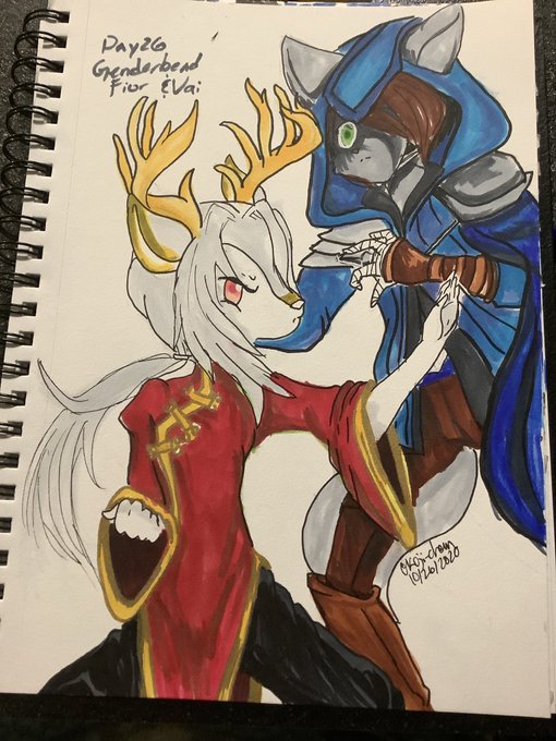 Day 26 is Genderbend And I did my favorite designs of Genderbend. I drew Fiorella and Vail, my sassy and sweet girls into Fior and Vai my aggressive and deadly bois @SarahDandh #DandhsOCtober2020 #OCtober2020 #inktober2020