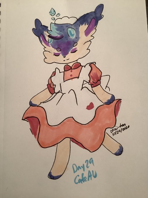 Day 29 is Cafe Au Didn’t really know what I wanted to draw to but honest so I drew my little Kittom, Cardia, as a little maid @SarahDandh #DandhsOCtober2020 #inktober2020 #maid #Elnin