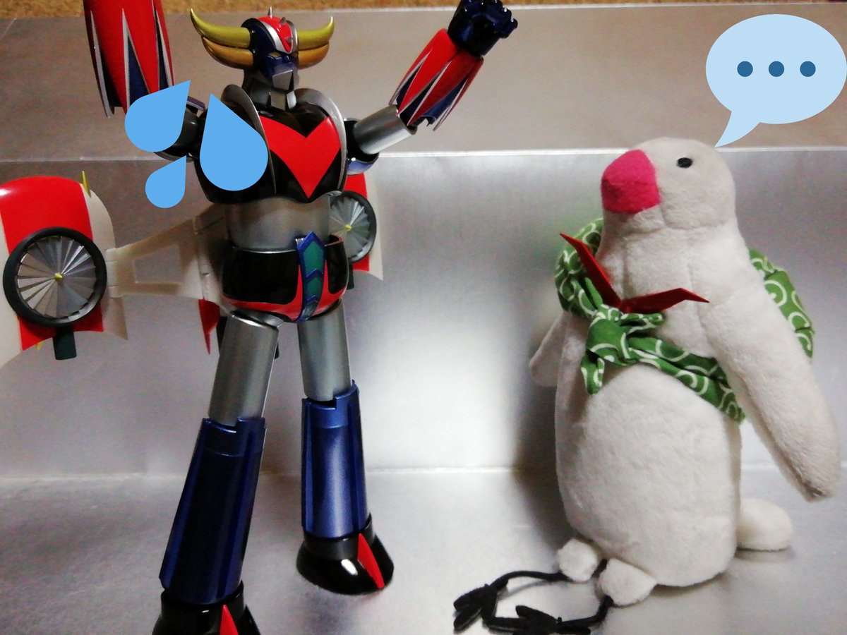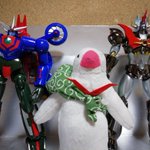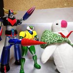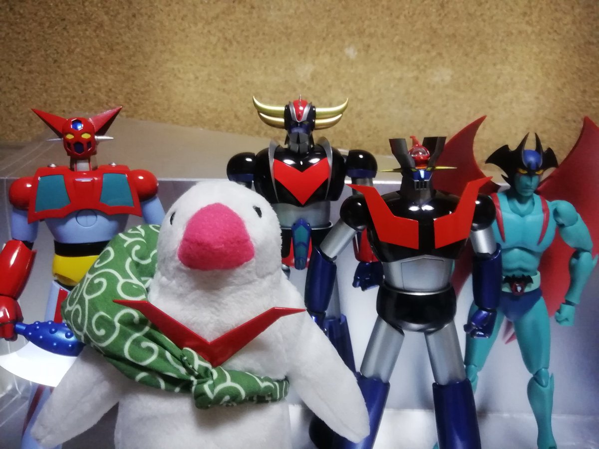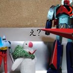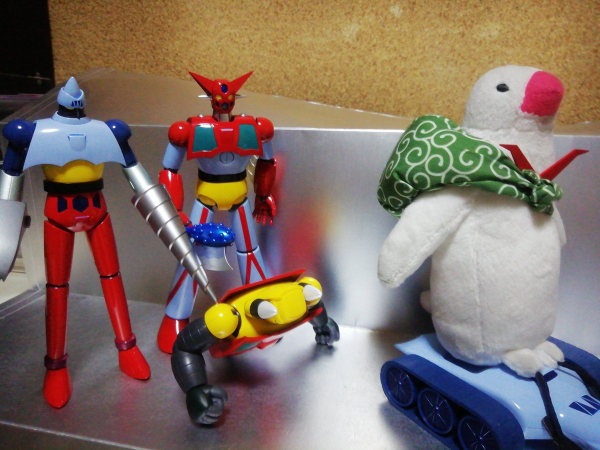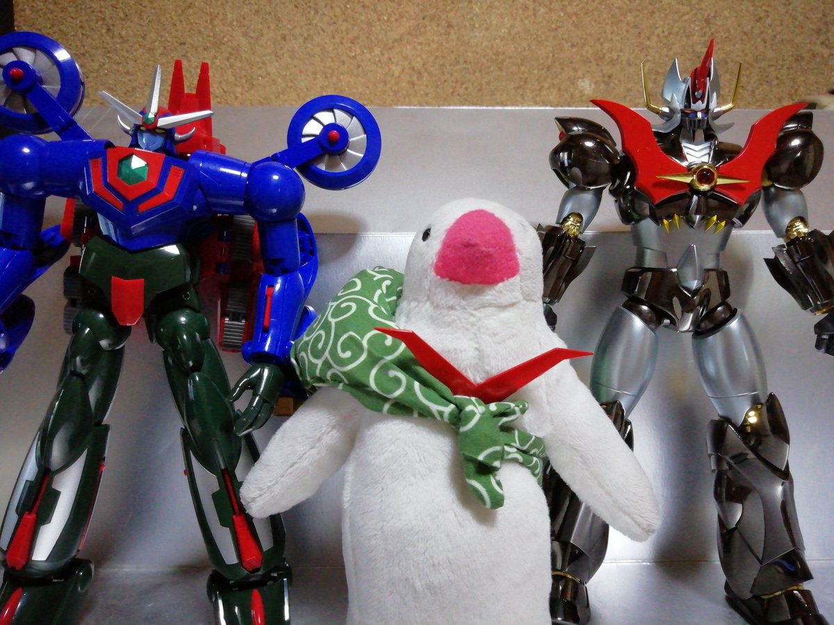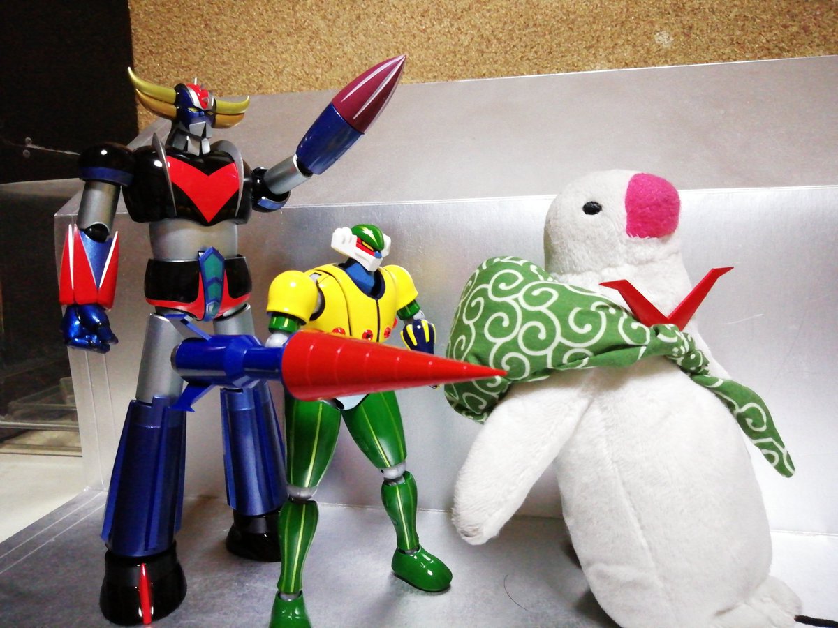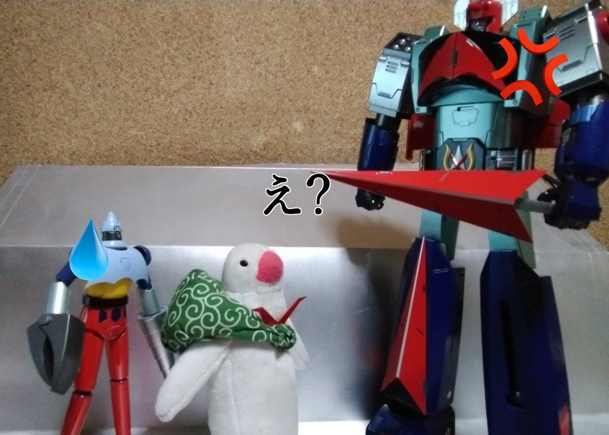 #おもちゃ撮影会 #グレートふろしき文鳥 お題「UFOor落ちる」 グレンダイザー「ダブルスペイザーとのコンビネーションクロス‼️( 。゚Д゚。)」 文鳥「UFOロボなんだから、スペイザーだろう⁉️。( ;´・ω・`)」 グレンダイザー「ダイザーGO‼️ε=(ノ゚Д゚)ノ」 文鳥「あっ、逃げた‼️ヾ(・д・`;)」