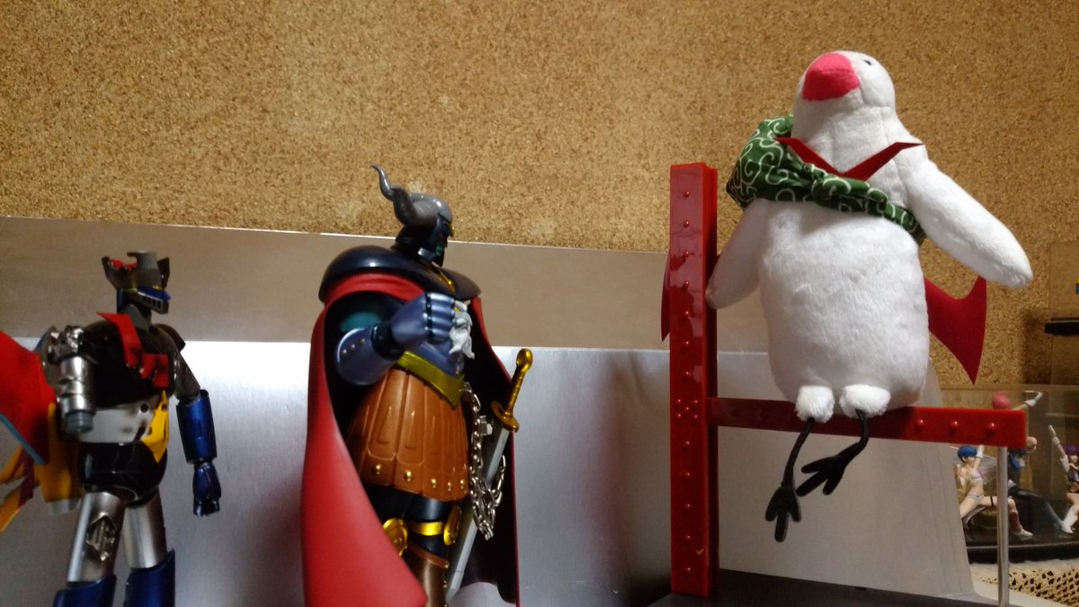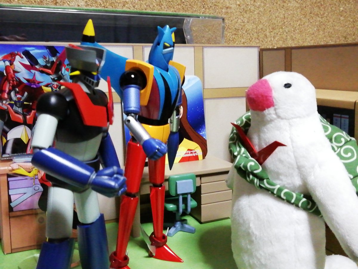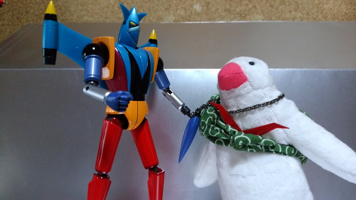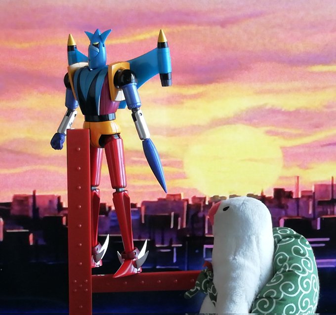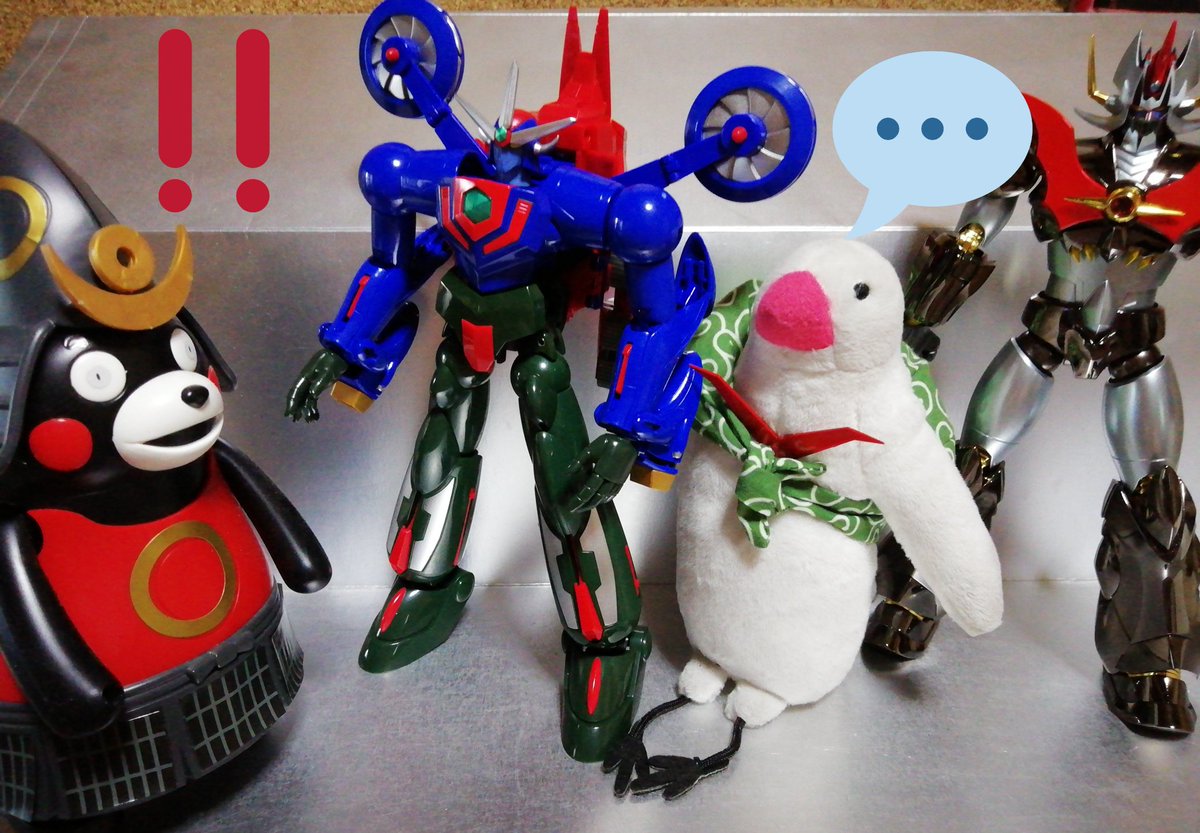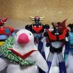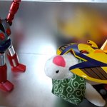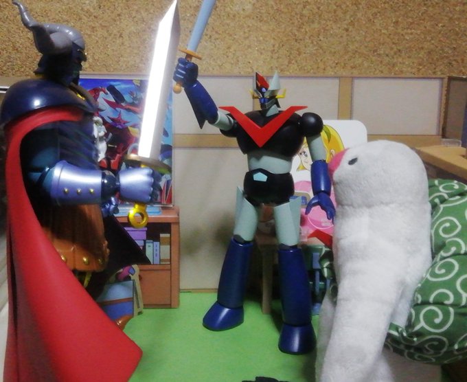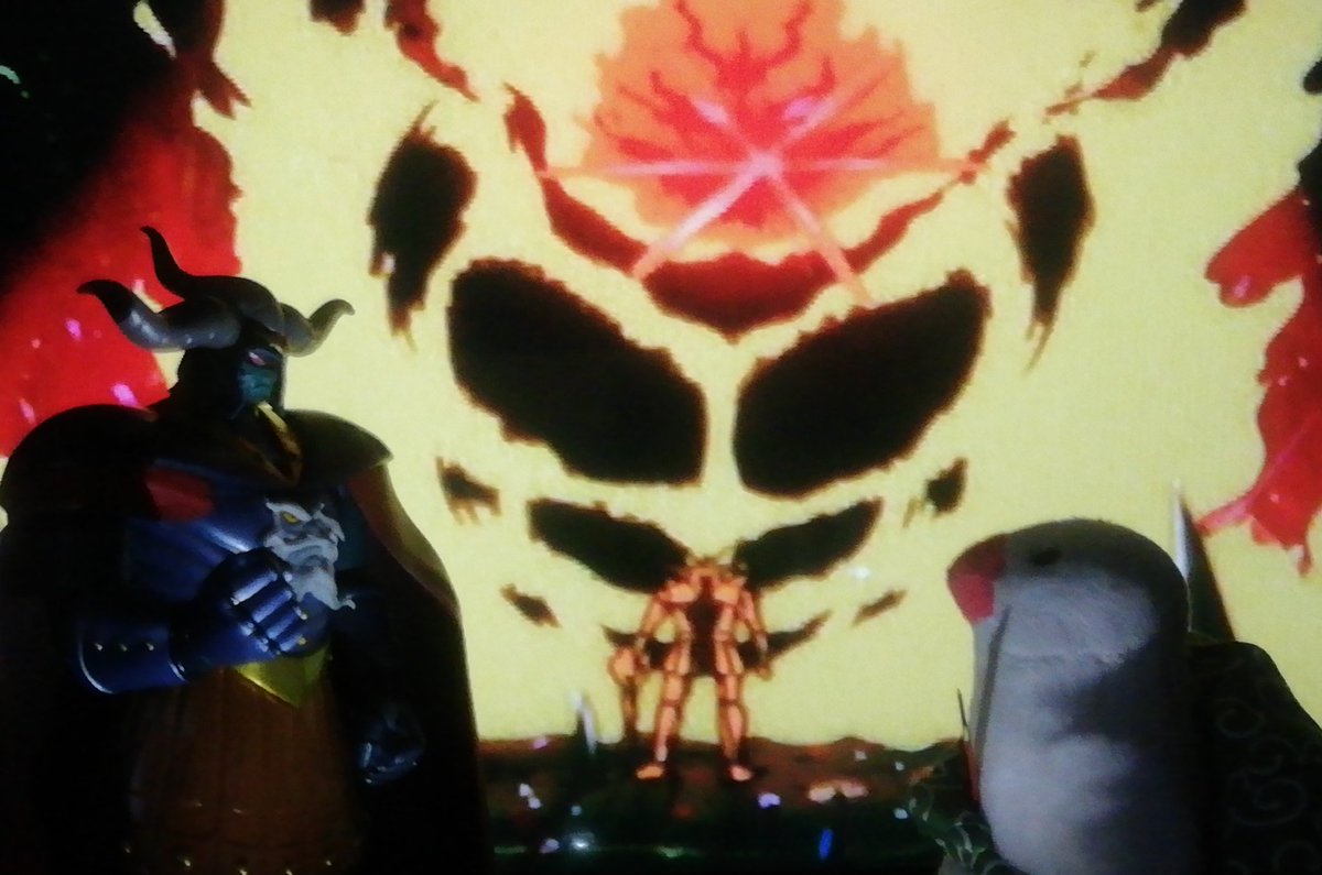 #おもちゃ撮影会 #グレートふろしき文鳥 お題「UFOor落ちる」 グレンダイザー「ダブルスペイザーとのコンビネーションクロス‼️( 。゚Д゚。)」 文鳥「UFOロボなんだから、スペイザーだろう⁉️。( ;´・ω・`)」 グレンダイザー「ダイザーGO‼️ε=(ノ゚Д゚)ノ」 文鳥「あっ、逃げた‼️ヾ(・д・`;)」