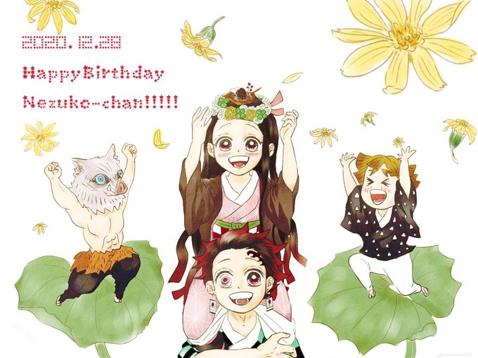 #竈門禰󠄀豆子誕生祭2020 #竈門禰󠄀豆子生誕祭2020 禰󠄀豆子ちゃんお誕生日おめでとう!! 生まれてきてくれてありがとう 存在全てが大好きです! 幸せになってね♡ 舞ってるお花は12月28日の誕生花 ツワブキ 花言葉は「困難に負けない」