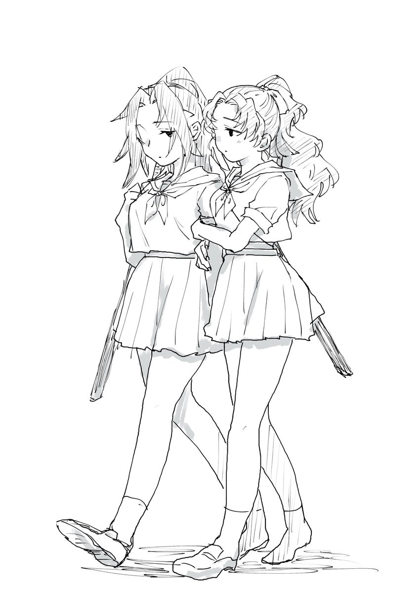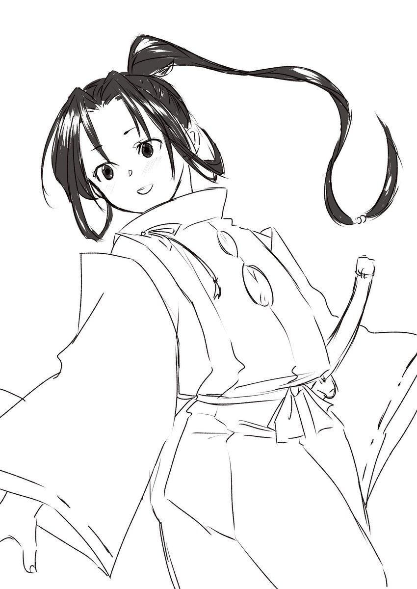 #縁巌深夜の発表会 昔描いた二人で出奔した世界線の二人 ちょっと大きくなってます この時代農民襷掛けしないぽいんですけど(も◯のけ姫参照)わたしが好きなのでさせました👍